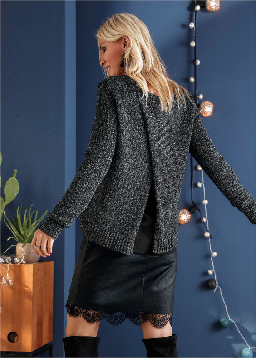 Svetre so silnými akcentmi sa hodia rovnako tak k bežnému, ako aj večernému outfitu. Skvelo vyzerajú s koženou sukňou, ktorá outfit ozvláštni, pridá mu na jase.