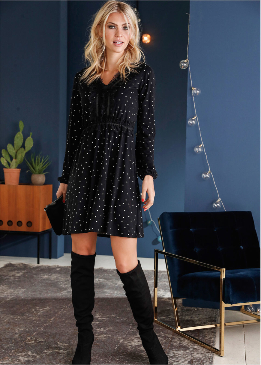 Na párty vždy obstoja aj malé čierne. Módni návrhári pomaly berú na milosť žiarivé farby a materiály ako velúr, polyester a džersej. Ak si zvyčajne vyberáte nohavice namiesto šiat, odporúčame dlhý overal z plisovaného džerseja. K nemu si obujte topánky na podpätku – a parket bude váš!